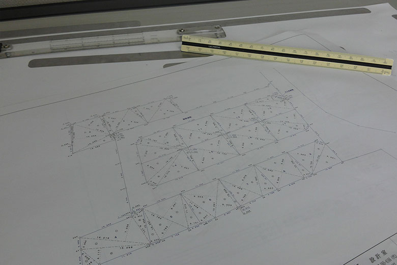 開発設計室を中心に、各ステージで求められる要件に迅速かつ正確に対応します。都市計画や建築基準法などの法令を踏まえ、戸建分譲事業に伴う設計および開発許可取得業務をはじめ、マンション・アパート・店舗など、さまざまな開発案件に携わっています。